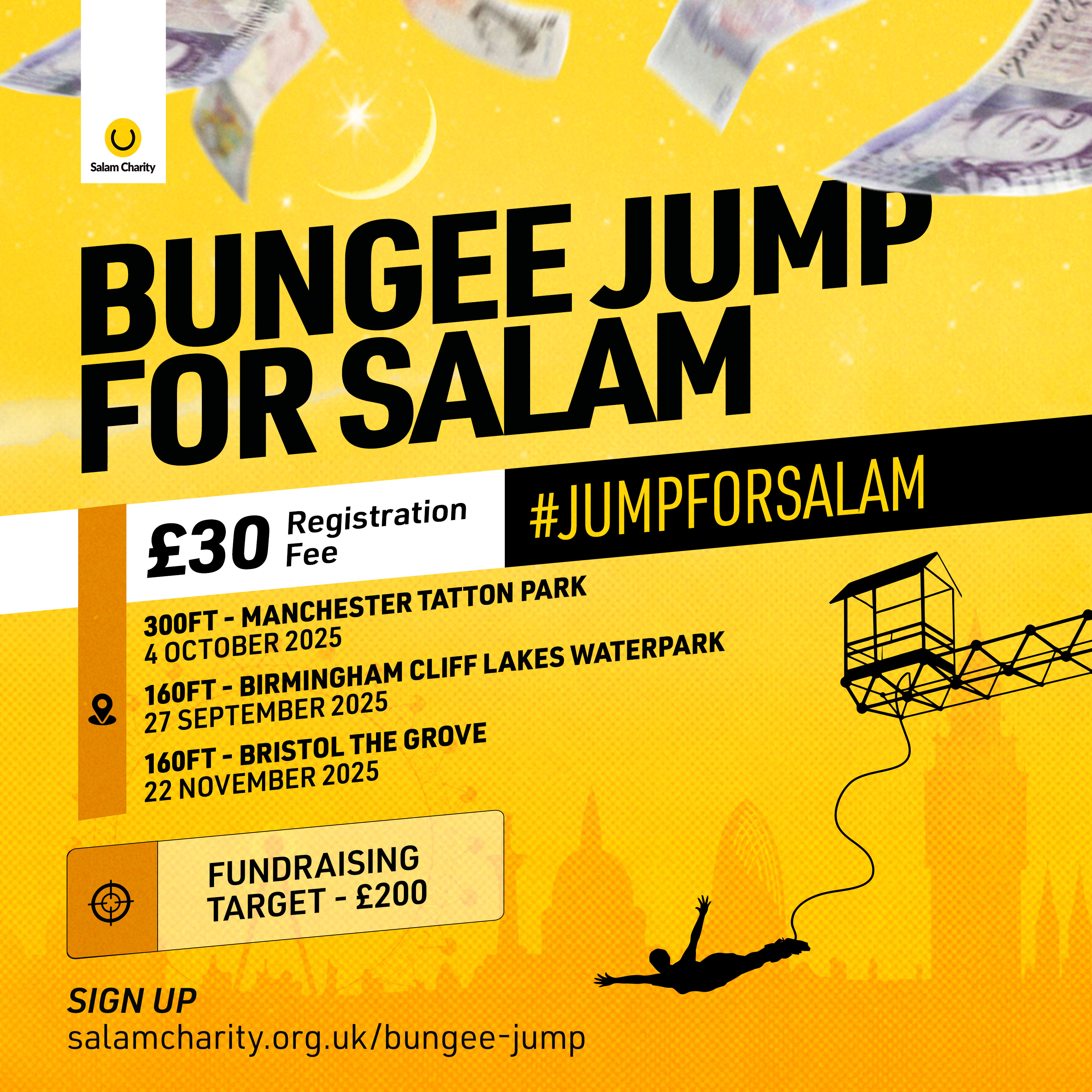 Team Salam will be bungee jumping with the pros in London & Manchester! Could you join us?
