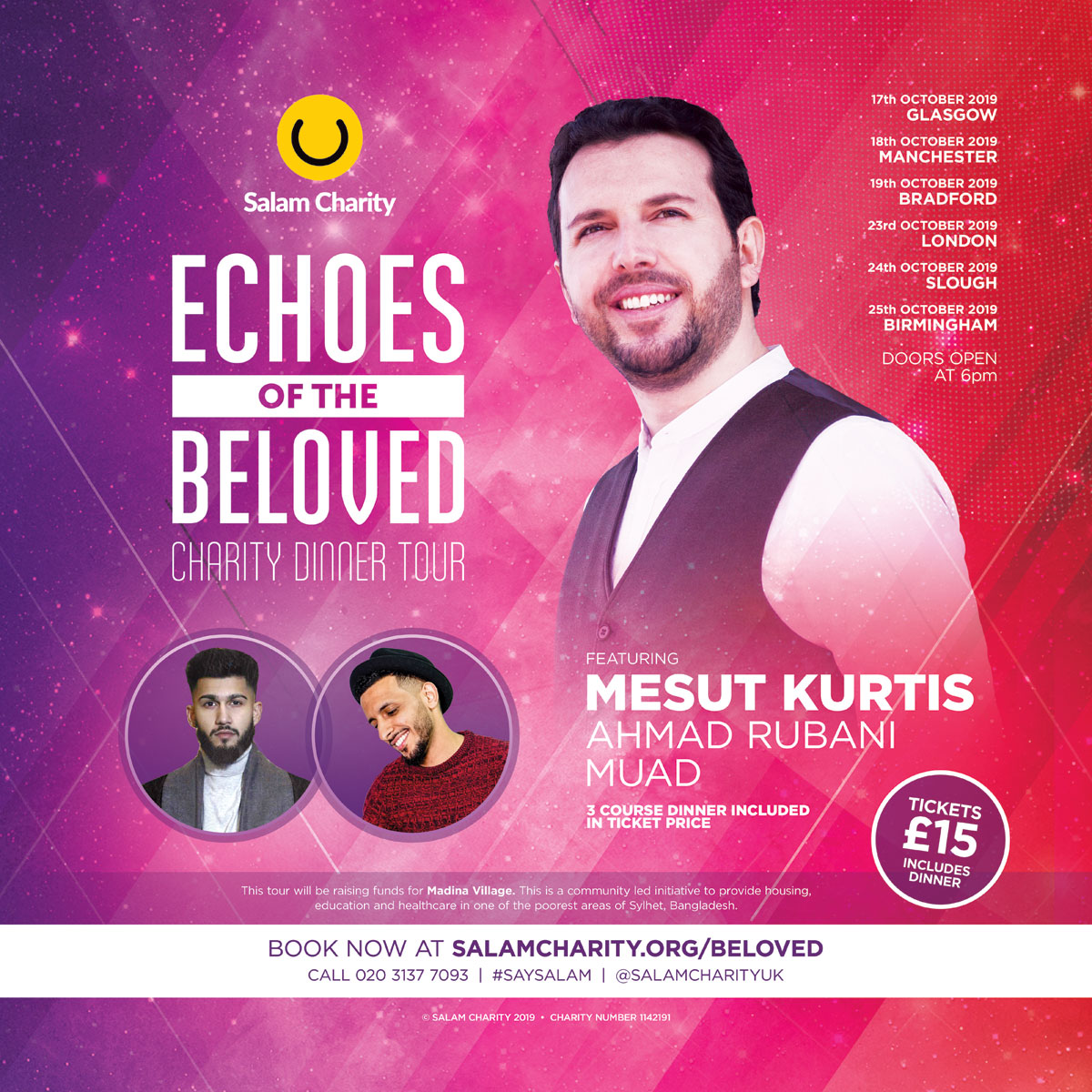 Join Mesut Kurtis, Ahmad Rubani, Muad and Qari Mohammed Talhah as they go on tour across the UK. Bringing a mix of spirituality and emotion, this tour promises to be the highlight of our year so far.